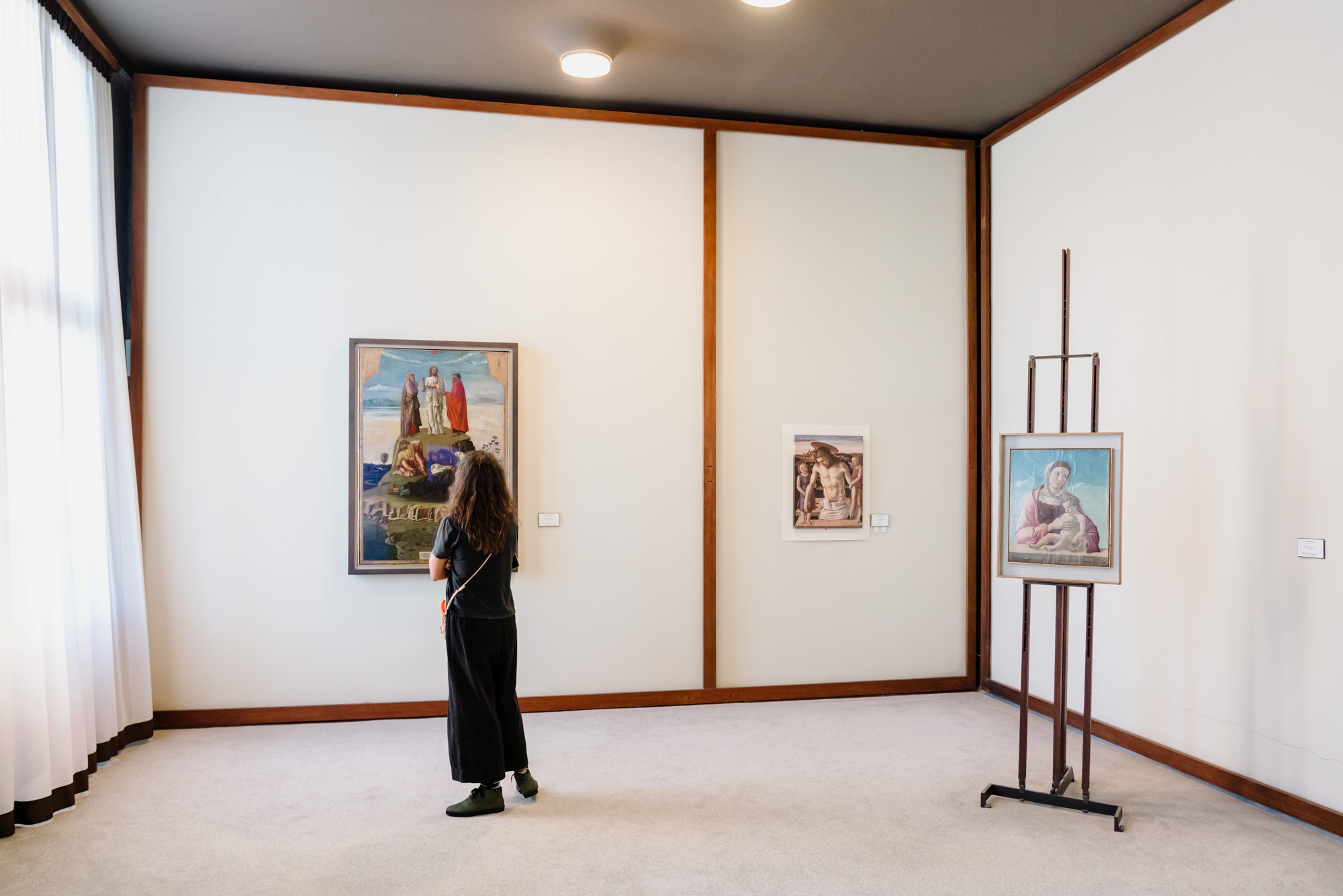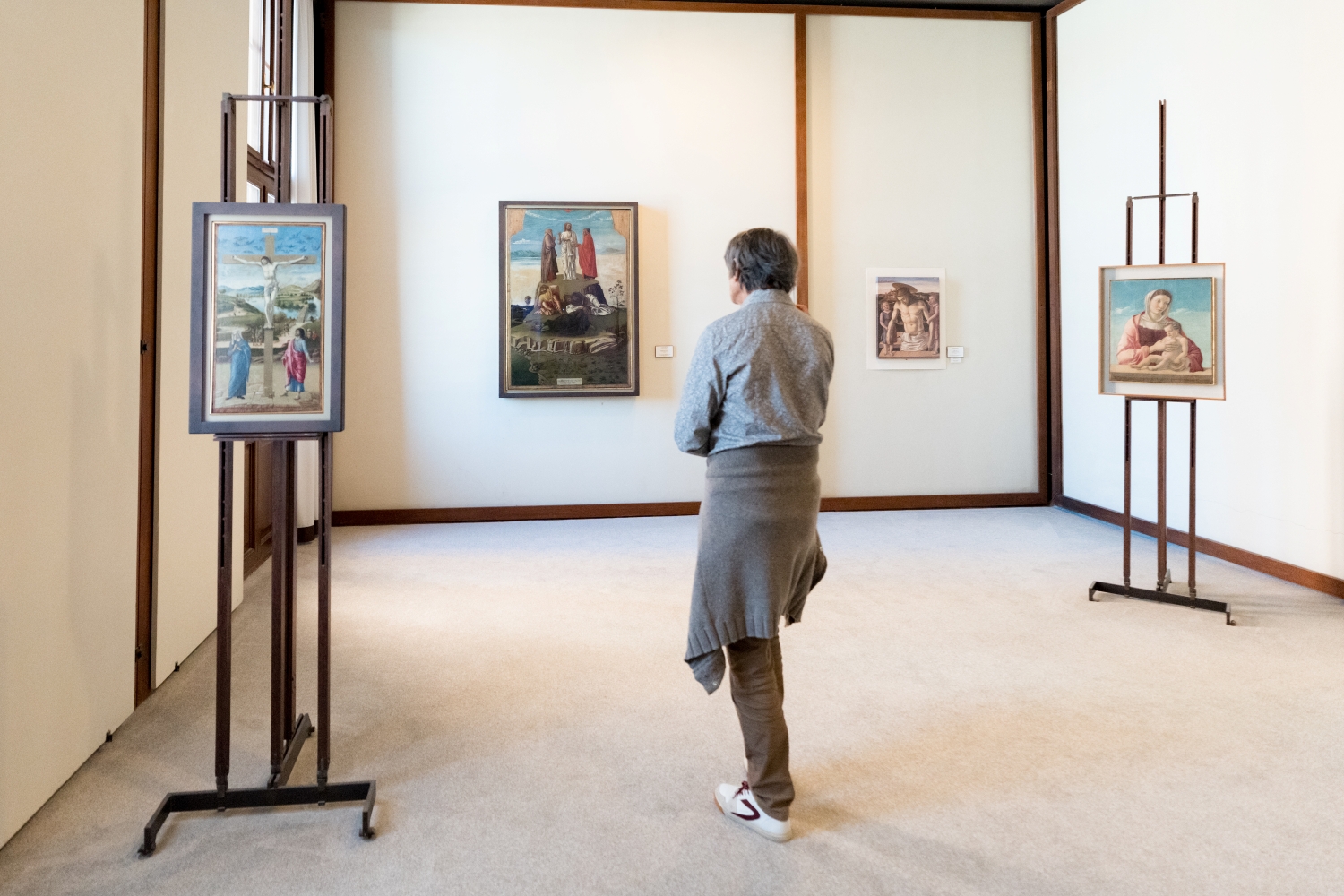 The Venetian painting scene of the 15th century found its foremost protagonists in the painters of the Bellini family. Jacopo introduced to Venice Renaissance influences developed between Florence and central Italy, while Gentile established himself as a refined portraitist of the Serenissima. Giovanni Bellini dominated the world of Venetian painting in the second half of the 15th century, developing an innovative pictorial language sensitive to the experiences of Mantegna and Antonello da Messina, characterized by monumentality, spiritual depth, and a keen attention to color, as demonstrated by the Crucifixion, the Pietà, and the Madonna and Child, also known as the Madonna Frizzoni.