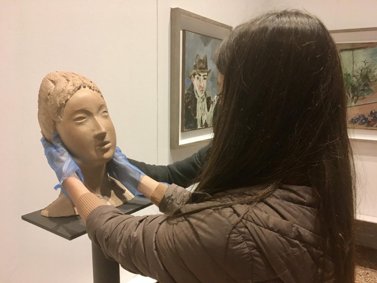 La litografia “Ceneri” del maestro norvegese Edvard Munch, proveniente dalle collezioni grafiche di Ca’ Pesaro, è eccezionalmente fruibile grazie ad una riproduzione tattile che consente di esplorare i contorni delle figure, l’alternanza tra pieni e vuoti, e l’intensità emotiva che attraversa l’immagine. “Testa di Medusa”, scultura originale in legno di Arturo Martini, rivela i dettagli scolpiti, le linee drammatiche del volto e la tensione espressiva che ne attraversa la forma. La “Bagnante” in bronzo di Max Klinger offre, infine, la possibilità di cogliere la morbidezza delle linee e l’equilibrio dei volumi, in una rappresentazione armoniosa e raccolta del corpo umano.