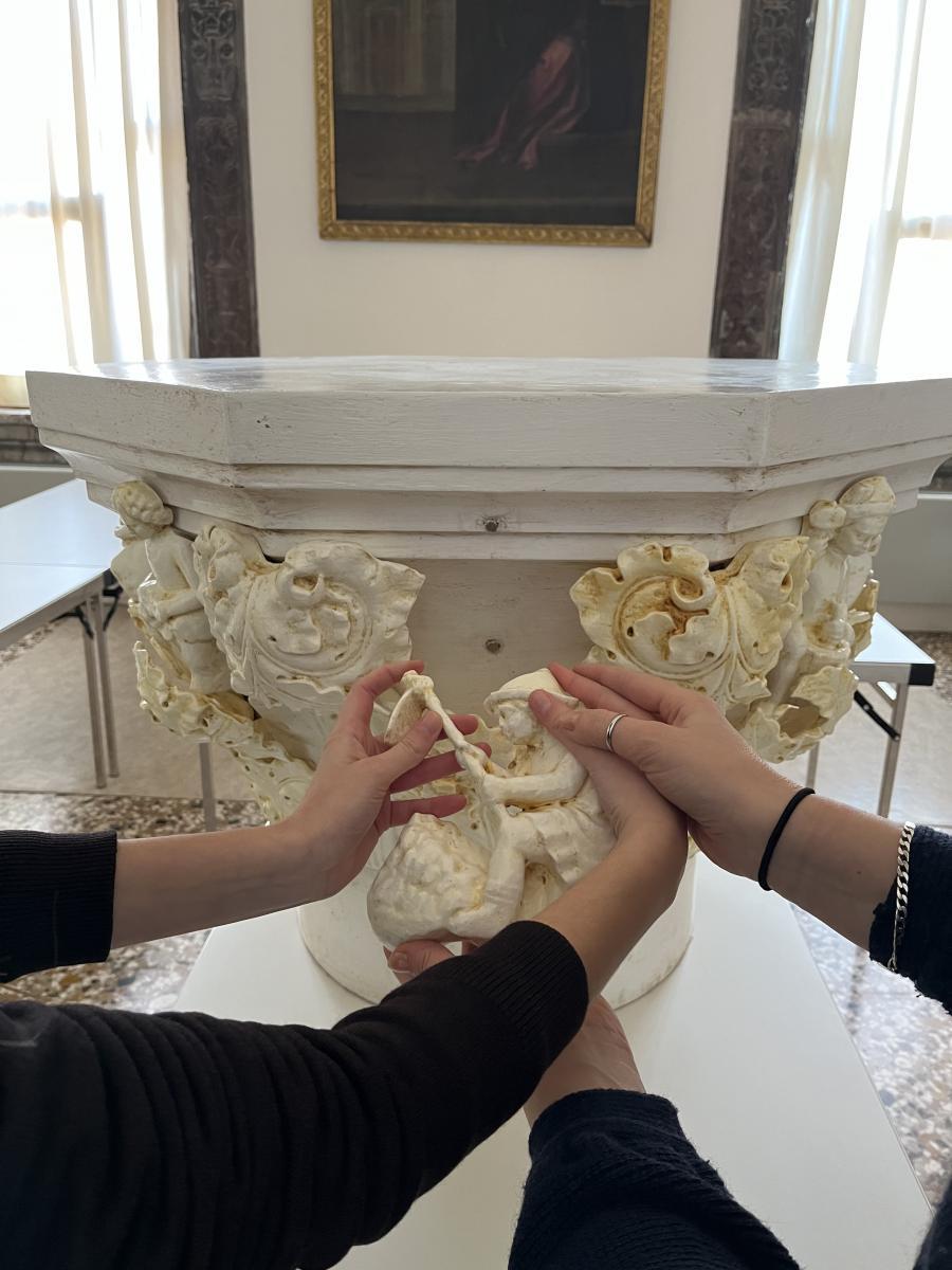 Il percorso tattile a Ca’ Rezzonico inizia nello Spazio ‘700 – Muve for All, sala completamente accessibile dove è possibile esplorare il modello in scala del palazzo e le riproduzioni delle opere La dama velata di Antonio Corradini e Allegoria della luce di Andrea Brustolon che presentano didascalie in Braille italiano.